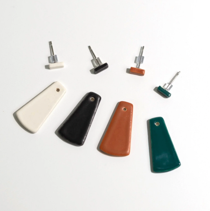 Post dangle earrings are 2 pairs of earring in one! Wear the rectangle posts alone or add the fan shape to create a dangle. Handcrafted lightweight, ceramic, durable and designed to be worn with a timeless wardrobe. Mix & Match: Create even more looks by mixing and matching other color and/or shape posts earrings.